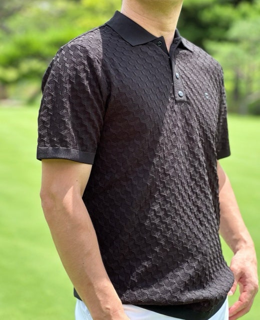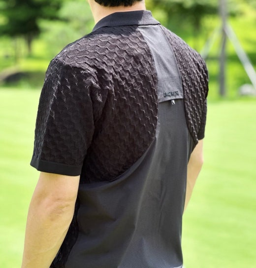 ➡️ 유니크한 코핀 조직의 카라넥 하이브리드 스웨터.
