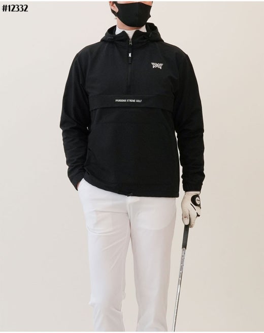 PXG 베이직 자수로고 기모 후드 아노락 자켓 블랙 남여공용(1컬러) 🅱️빅사이즈