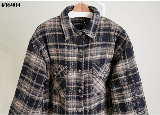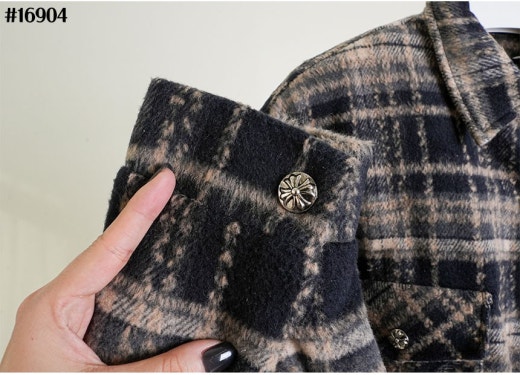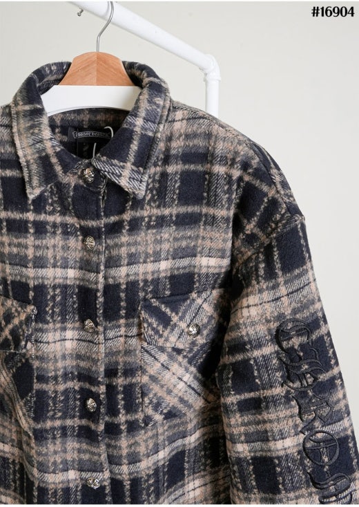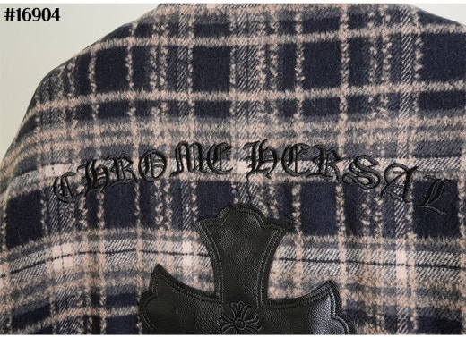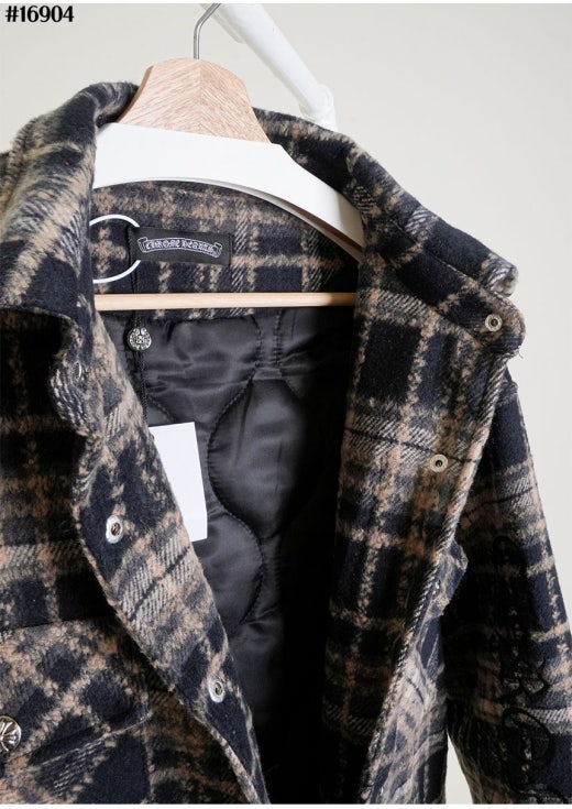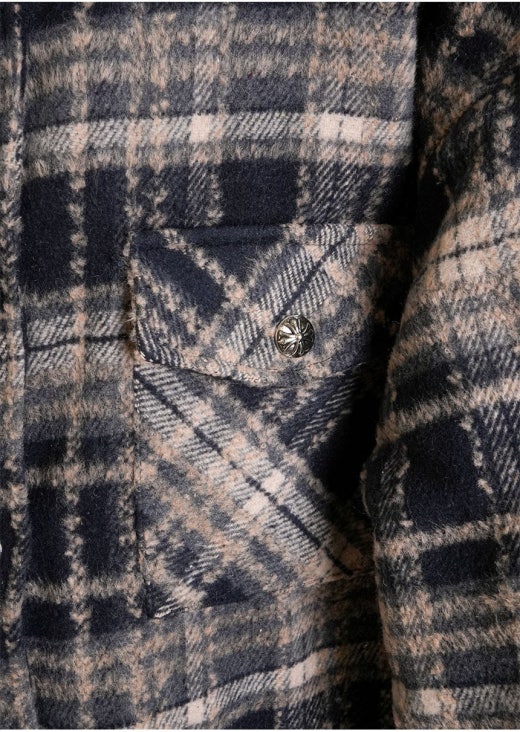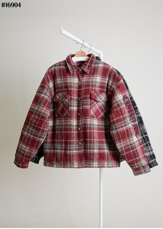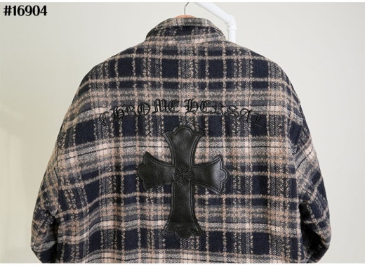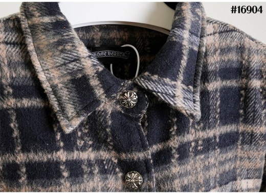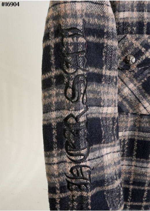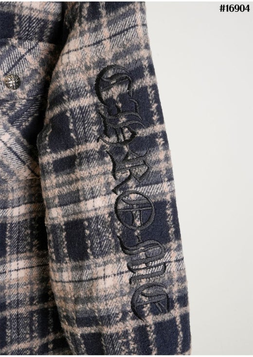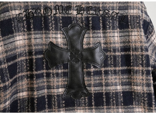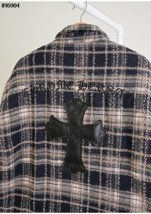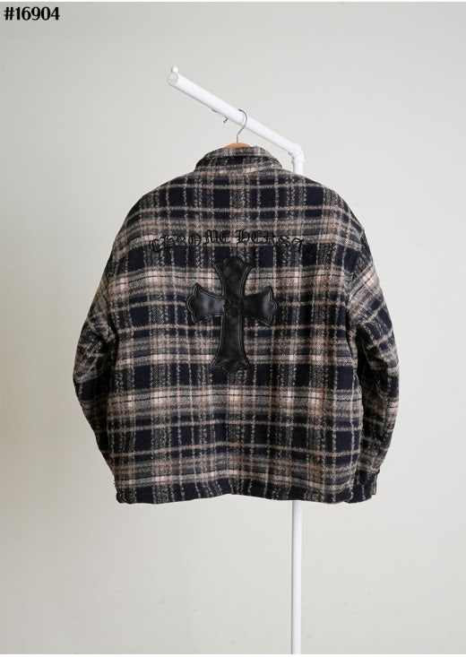 크롬하츠 레더 십자 크로스 패치 플란넬 체크 다운 셔츠 남성용(2컬러)