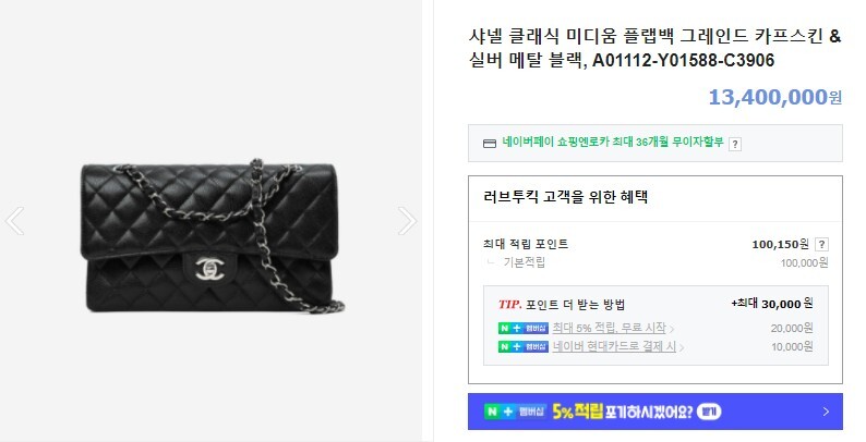 샤넬 클래식 미디움 플랩백 실버메탈 여성용(1컬러)