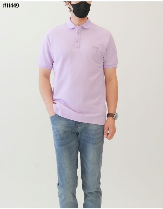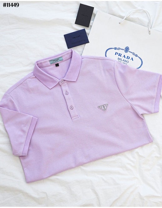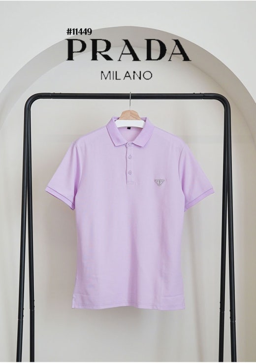 프라다 히포켐푸스 삼각로고 카라 반팔티셔츠 라벤더 남성용(1컬러)