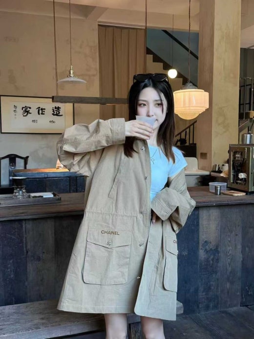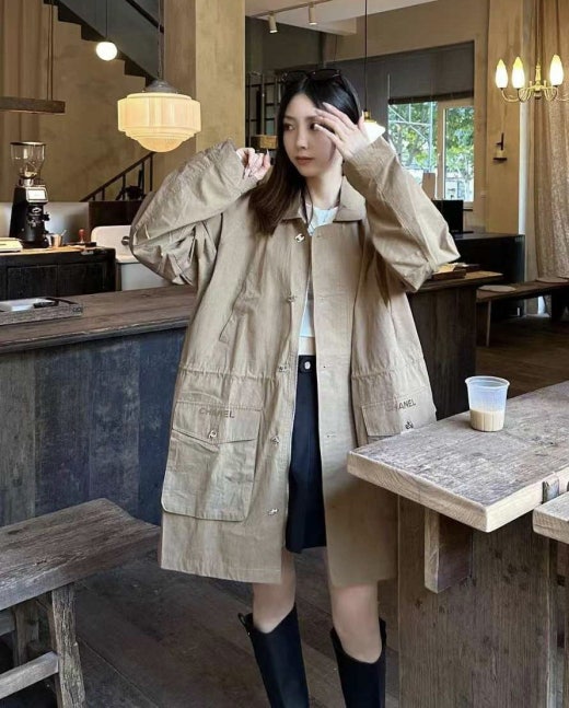 샤넬 오버핏 드로스트링 야상 진베이지 여성용(1컬러)