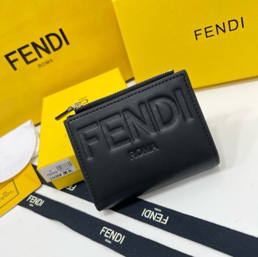펜디 스탬프 로고 블랙 지퍼 반지갑 여성용(1컬러)