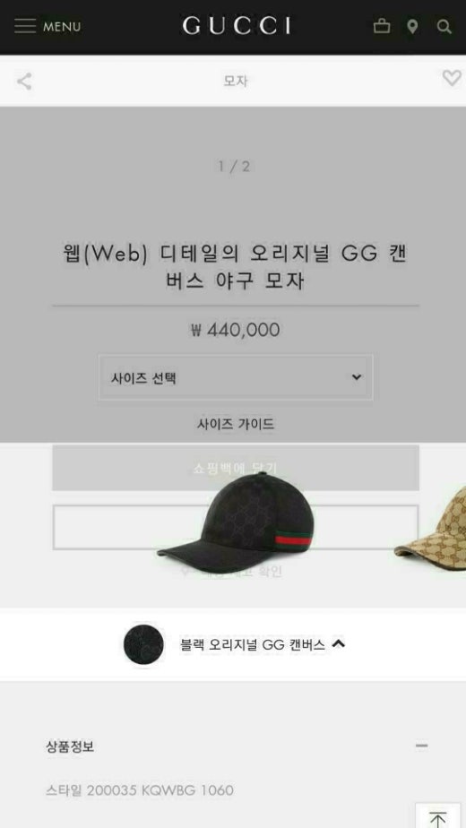 구찌 삼선 캔버스 캡 블랙 남여공용(1컬러)