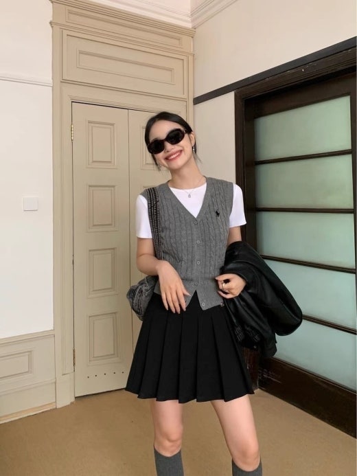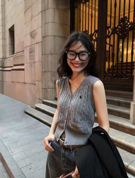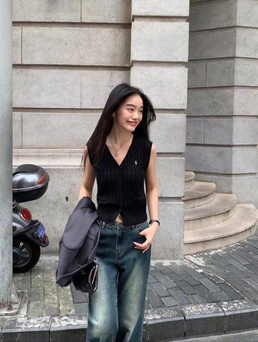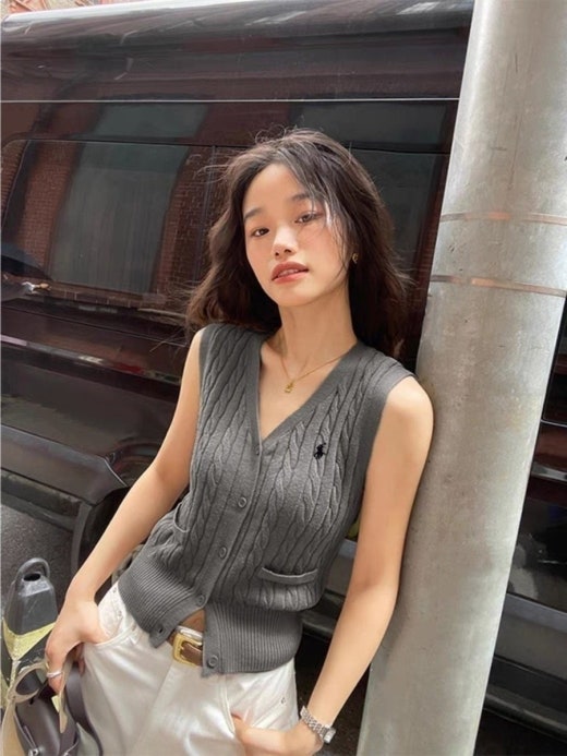 폴로 자수로고 케이블 패턴 니트 조끼 여성용(2컬러)
