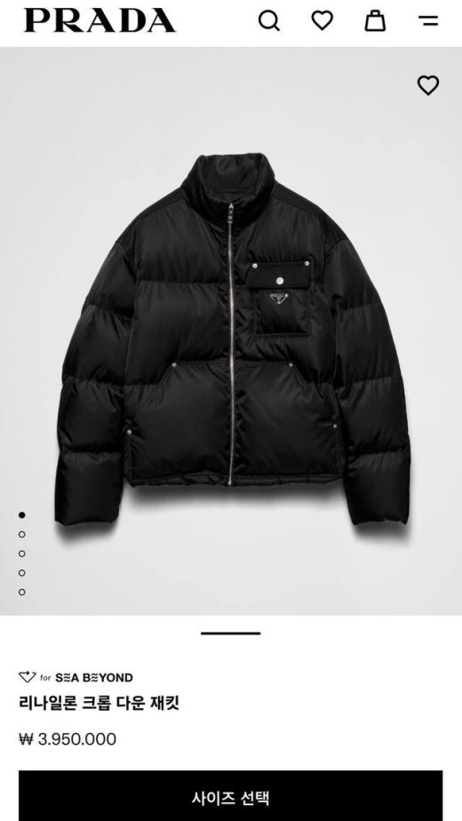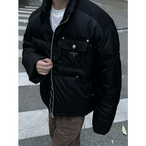 프라다 리나일론 크롭 구스다운 패딩 블랙 남여공용(1컬러) 🅱️빅사이즈