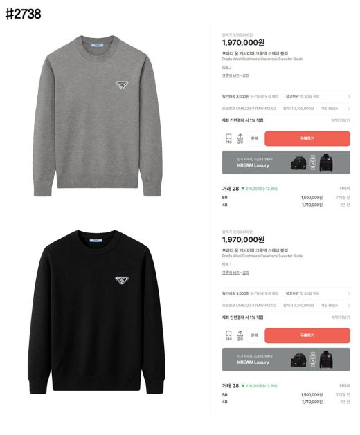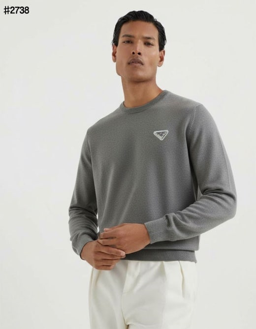 프라다 트라이앵글 로고 패치 베이직 울 블렌드 니트 풀오버 남성용(2컬러)