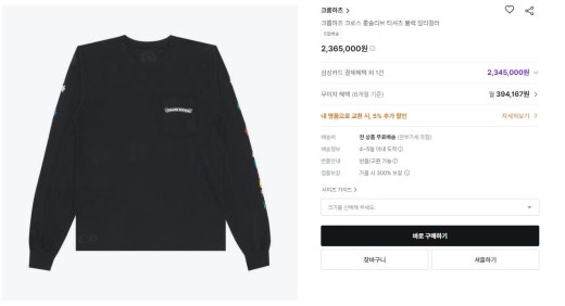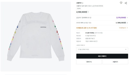 크롬하츠 멀티 컬러 롱 슬리브 긴팔 티셔츠 남여공용(2컬러)