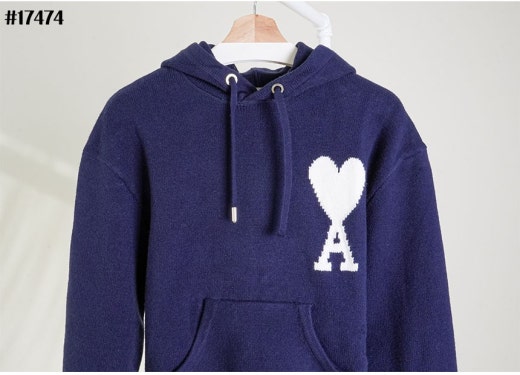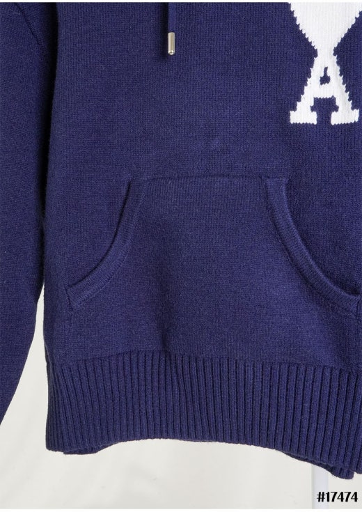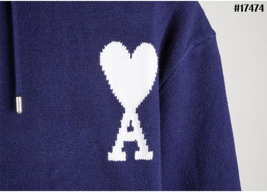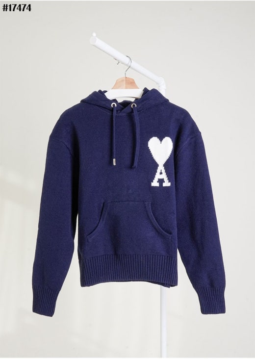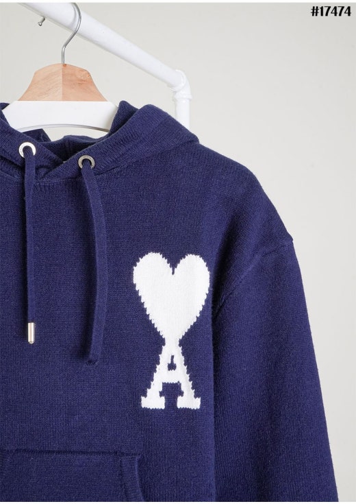 아미 드 꾀흐 빅 하트 로고 인타르시아 울 니트 후디 네이비 여성용(1컬러)
