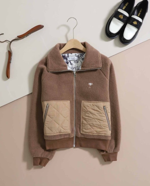디올 꿀벌 포켓 퀼팅 플리스 자켓 브라운 여성용(1컬러)