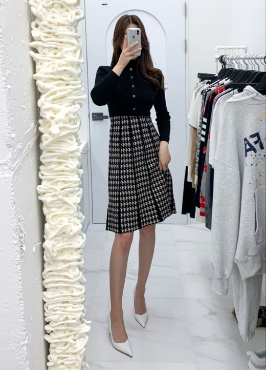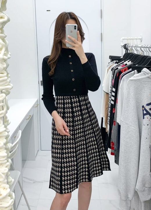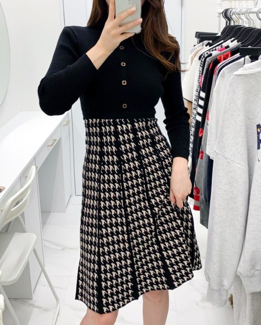 구찌 체크패턴 플레어 니트원피스 여성용(1컬러)