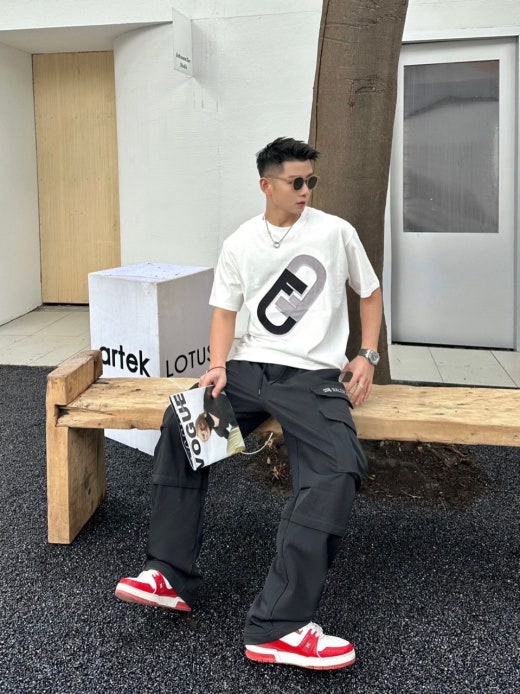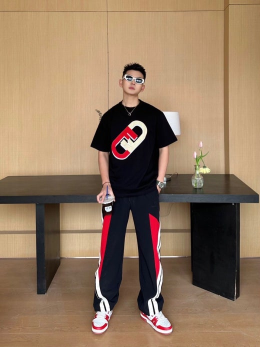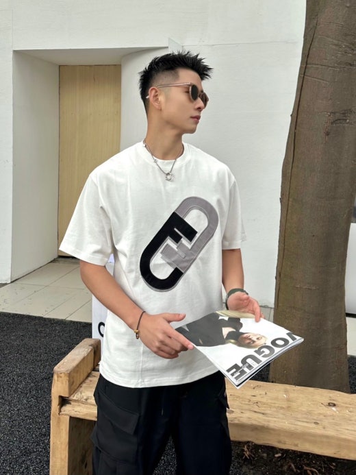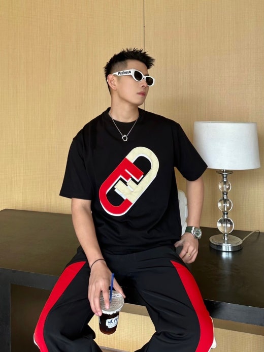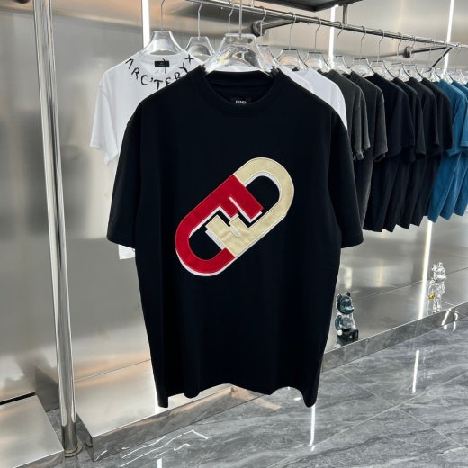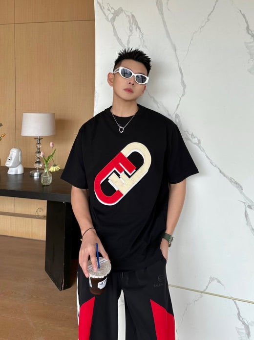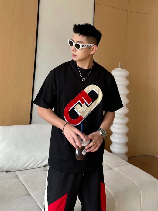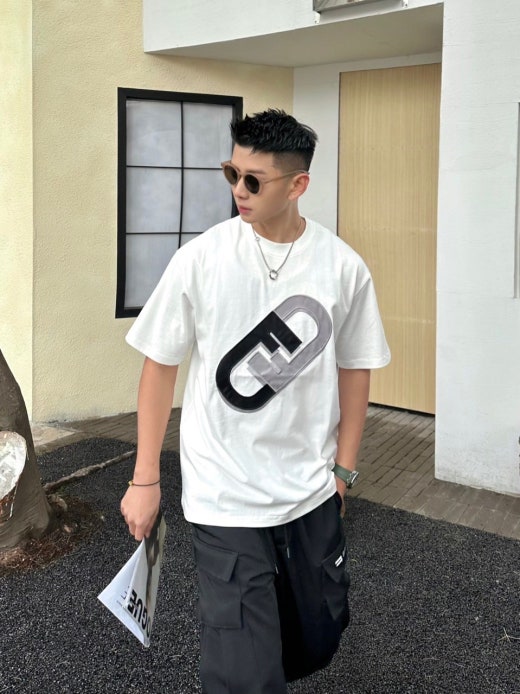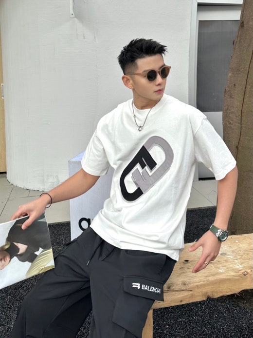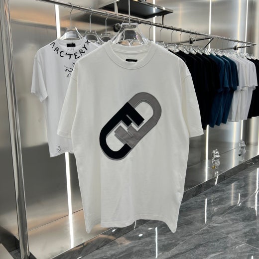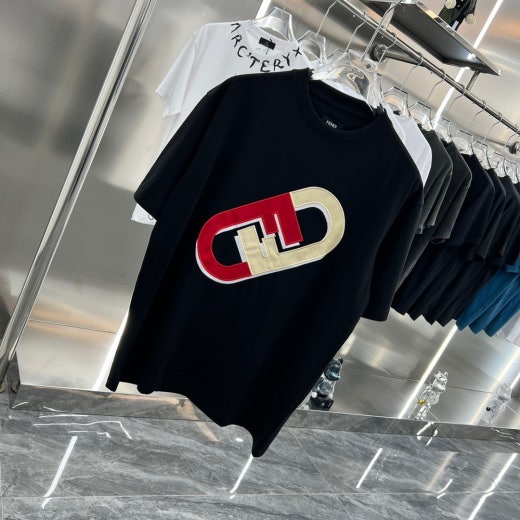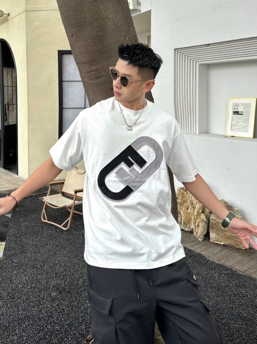 펜디 면실크 자수로고 오버핏 라운드 반팔 티셔츠 남성용(2컬러)