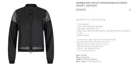 어메이징크리 매.장.판 에어서킷 나노그램 아코디오 자켓 블랙 여성용(1컬러)