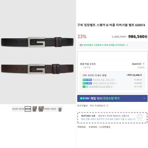 구찌 스퀘어 G 버클 리버서블 벨트 남성용(1컬러)