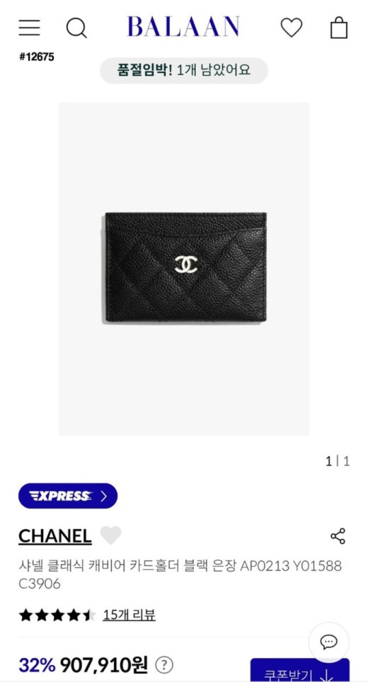 샤넬 클래식 캐비어 카드 홀더 여성용(2컬러)