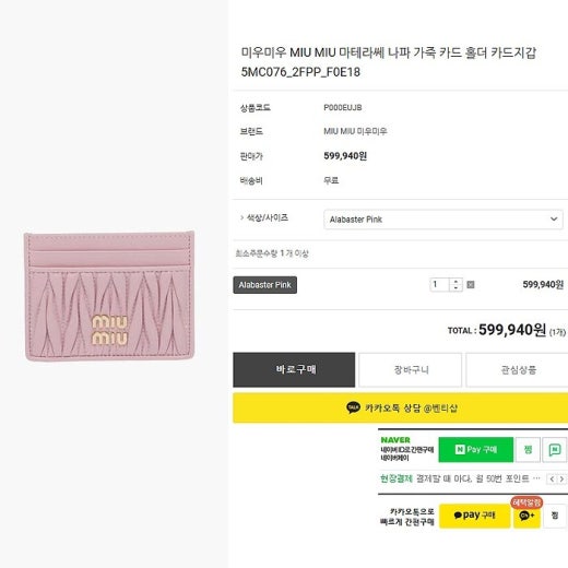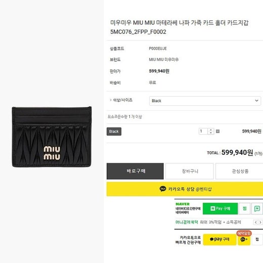 미우미우 마테라쎄 카드지갑 여성용(2컬러)