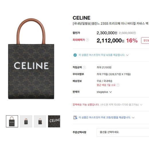 셀린느 트리오페 미니 버티컬 카바스 탠 여성용(1컬러) ⚓036