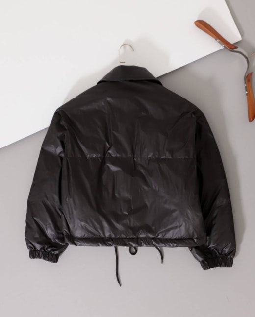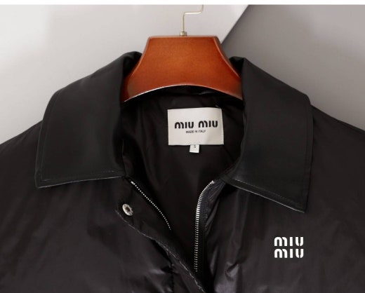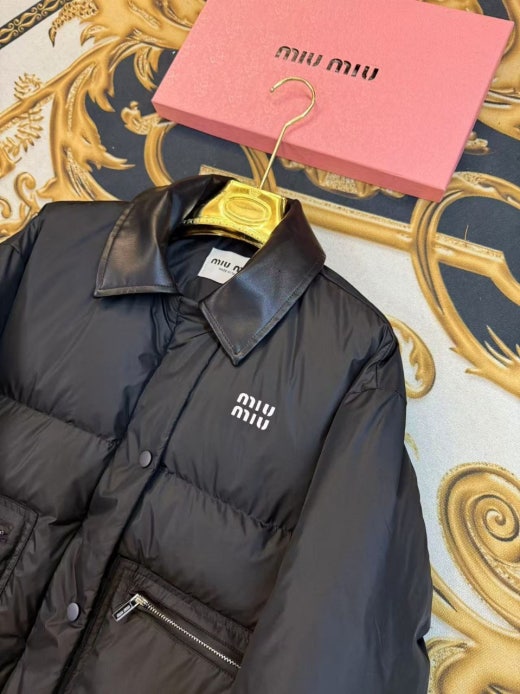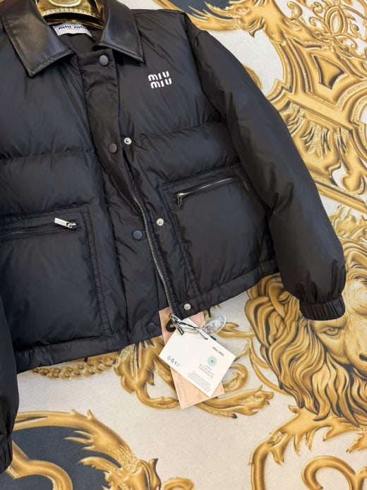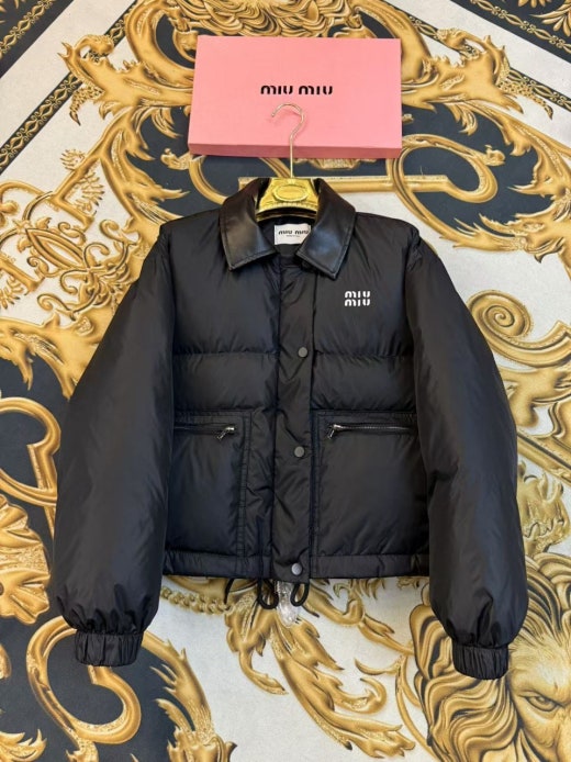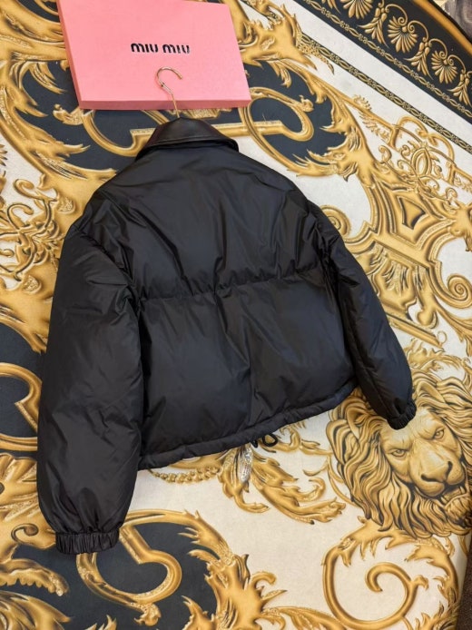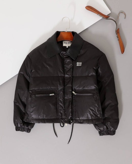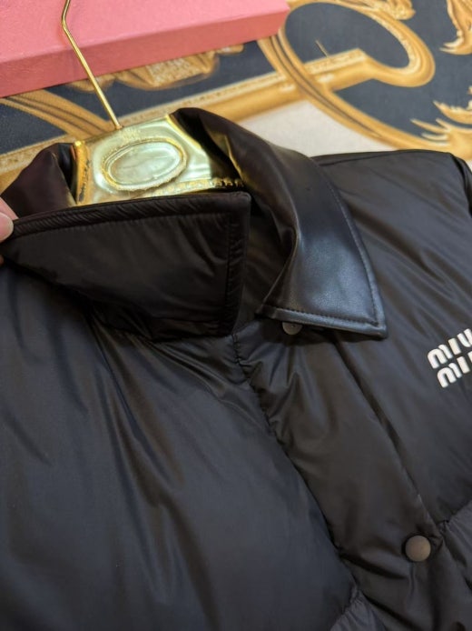 미우미우 레더카라 크롭 다운패딩 블랙 여성용(1컬러)