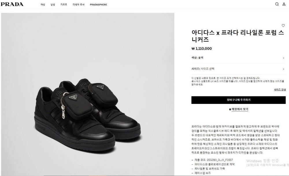 프라다 X 아디다스 콜라보 리나일론 포럼 스니커즈 블랙 남여공용(1컬러)