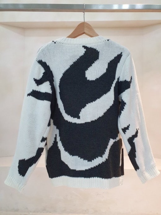 다른 부연설명 필요없이 사진 상의 부자재 및 라벨, 두께감 있는 면 + 울 원사를 사용하고 소매 부분은 이중 안감 짜임이 들어간 고퀄리티 니트입니다.