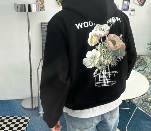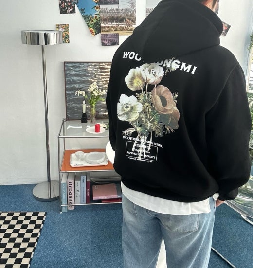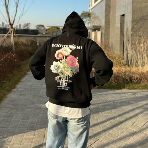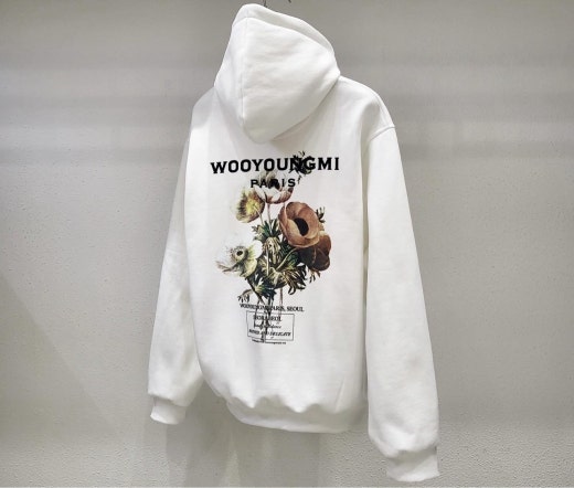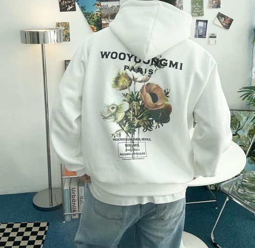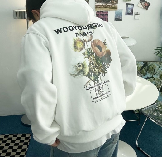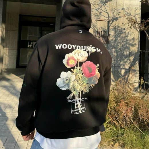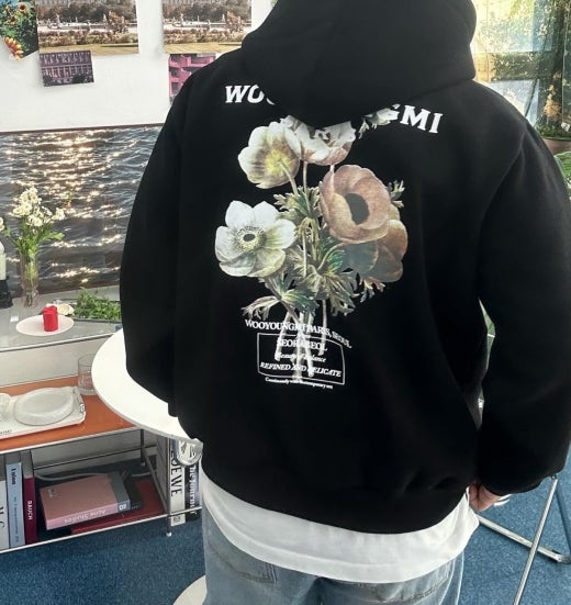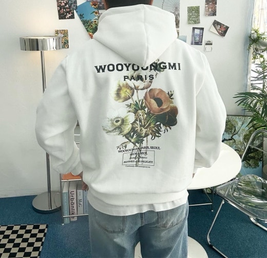 우영미 뉴시즌 플라워 백로고 후드 셔츠 남여공용(2컬러)