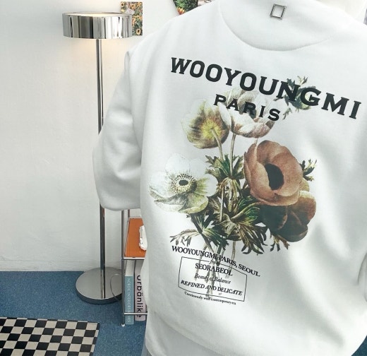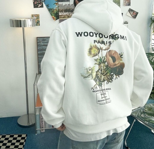 ▪ 뉴시즌 WOOYOUNGMI 브랜드에 플라워 백로고 후드 티셔츠입니다. 리셀가도 상당히 높은 제품으로 희소성있는 제품입니다! 가장 신경쓰는 뒷판 은장로고 안쪽면 이면봉제로 은장로고 자국이 전혀 남지않는 고급봉제 방식입니다. 은장 헨드메이드(손바느질) 겉면 노출없이 안쪽으로 깔끔하게 이면봉제 오리지널과 마찬가지로 안쪽 매듭면이 라벨판에 가려지는 어려운 봉제 방식입니다. 암홀쪽 저희가 늘 사용하던 갈라삼봉 방식이 아닌 몰아삼봉으로 한쪽으로 몰아서 2줄로 스티치가 들어가는 명품 브랜드 제품에만 사용하는 견고한 작업 방식입니다.