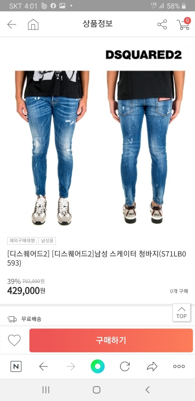 디스퀘어드 스케이터진 남성용(1컬러)