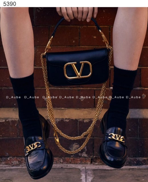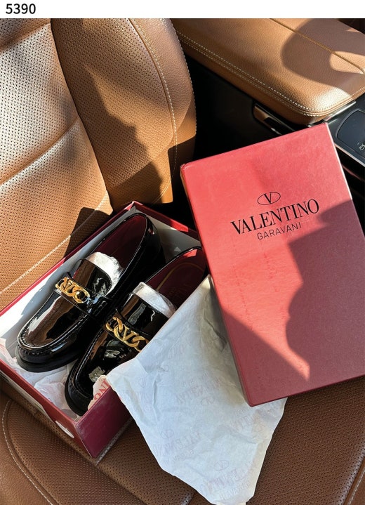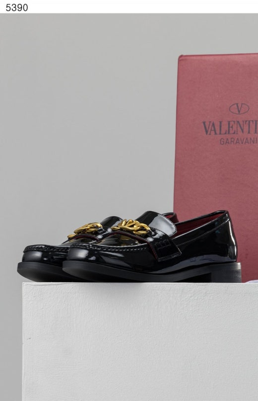 발렌티노 V로고 체인 가죽 로퍼 블랙 여성용(1컬러)