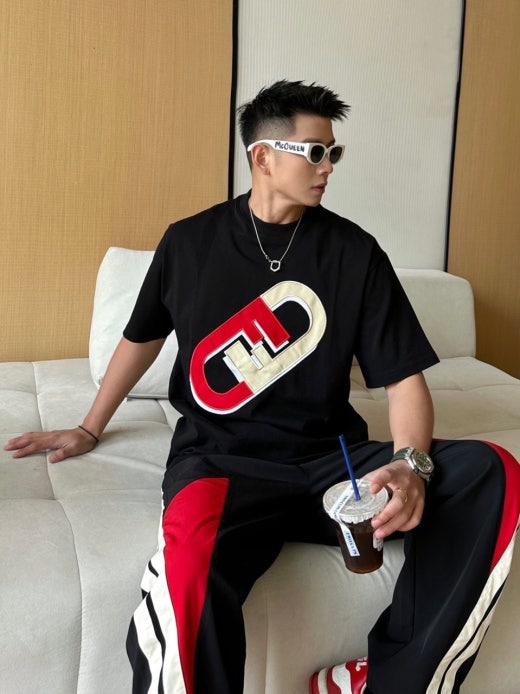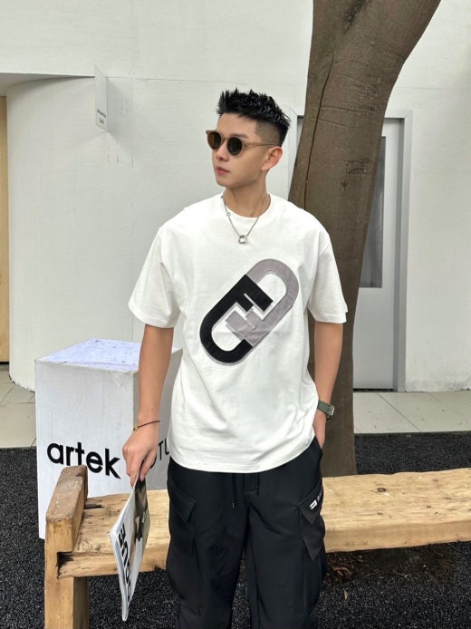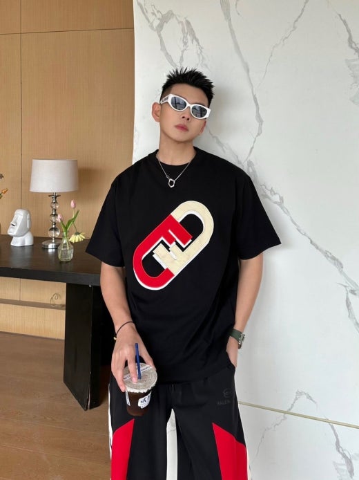 펜디 면실크 자수로고 라운드 반팔티셔츠 남성용(2컬러)