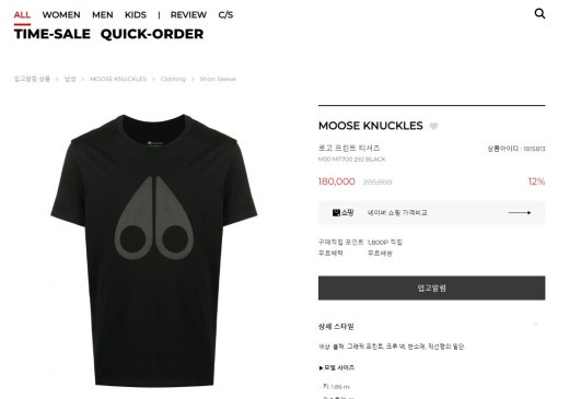 무스너클 매.장.판 빅로고 반팔티셔츠 남성용(2컬러)