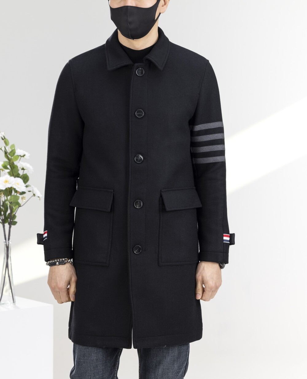 톰브라운 프리미엄 커.스.텀 4바 양모 블랙코트 남성용(1컬러)