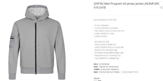 어메이징크리 매.장.판 프로그램-키트 우븐 후디 세트 그레이 남성용(1컬러)