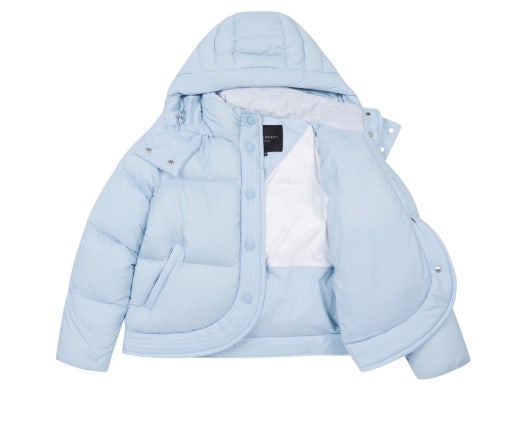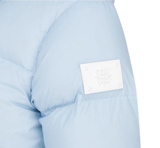 밑단 튤린 다운 점퍼. 여성스러우면서 캐주얼한 아이템. 부드러운 촉감에 고급스러운 원단 사용. 데일리로 착용 가능.