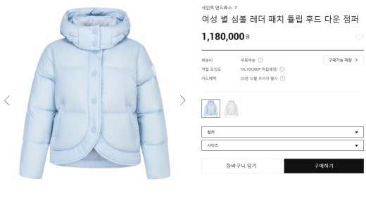 세인트앤드류스 매.장.판 별 심볼 레더 패치 튤립 후드 다운 점퍼 블루 여성용(1컬러)