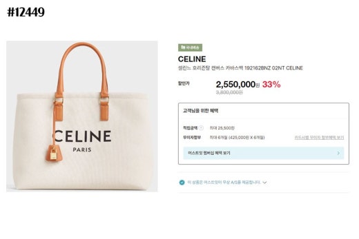 셀린느 호리즌탈 카바스 캔버스 토트백 아이보리 여성용(1컬러)