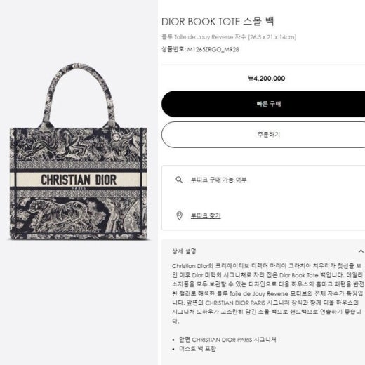 디올 트왈드주이 리버스 북 토트 스몰 백 네이비 ⚓016 여성용(1컬러)