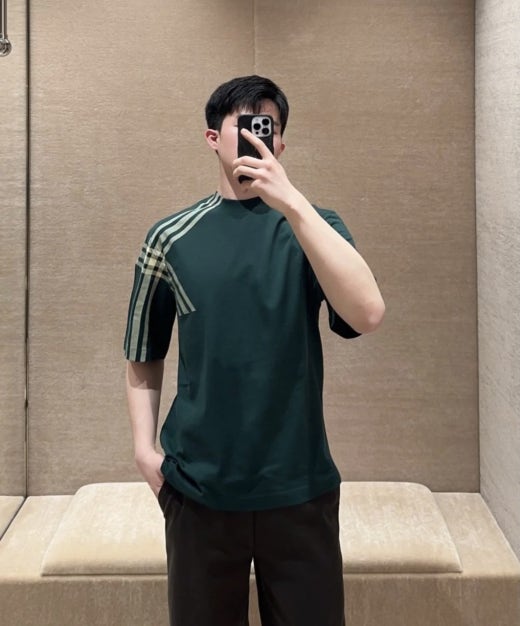 버버리 숄더체크 반팔티셔츠 그린 남성용(1컬러)