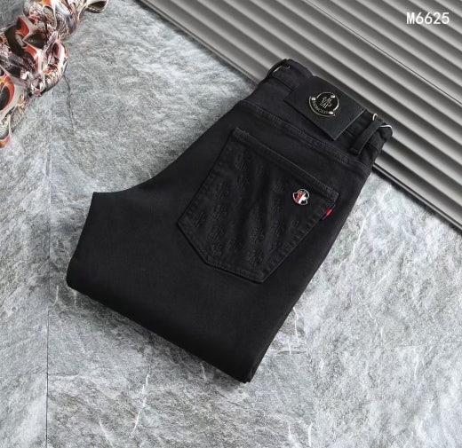 몽클레어 멀티 오뚜기로고 가죽패치 스판 데님진 블랙 남성용(1컬러)