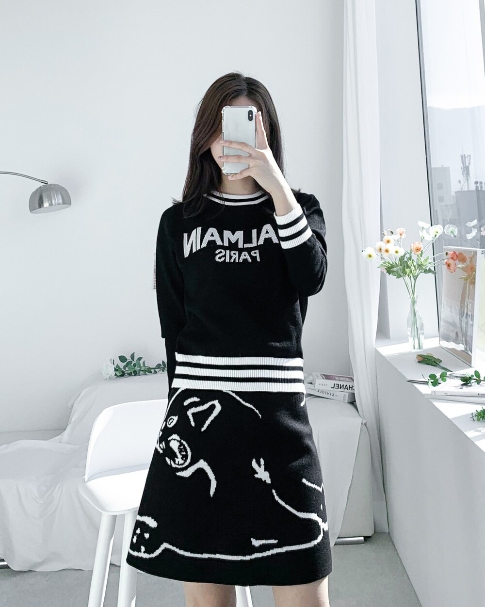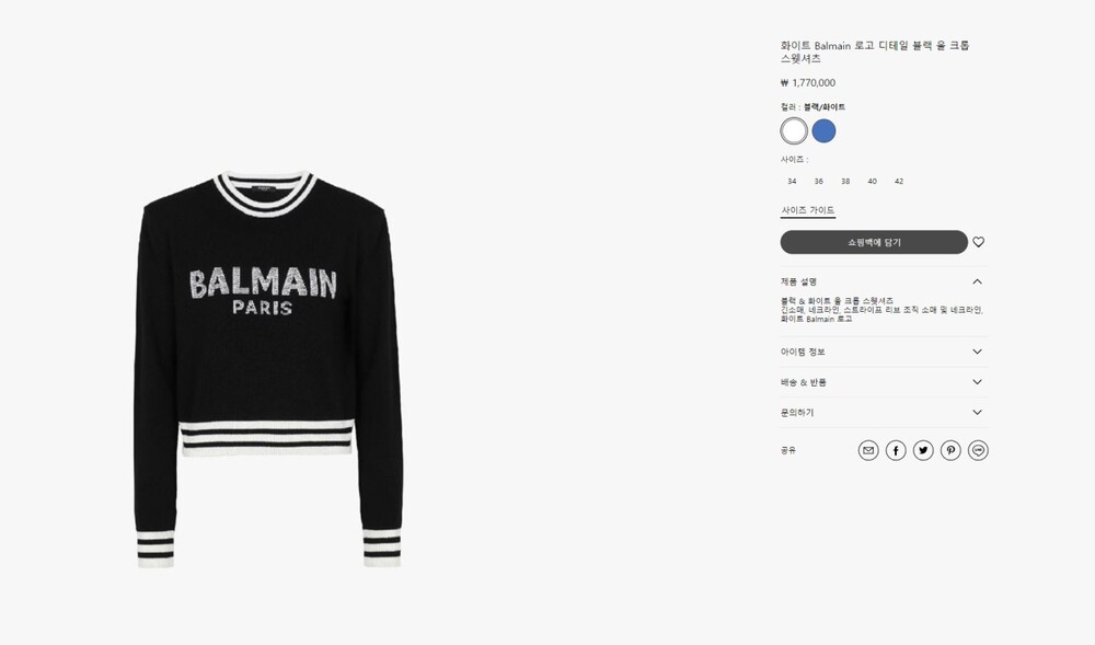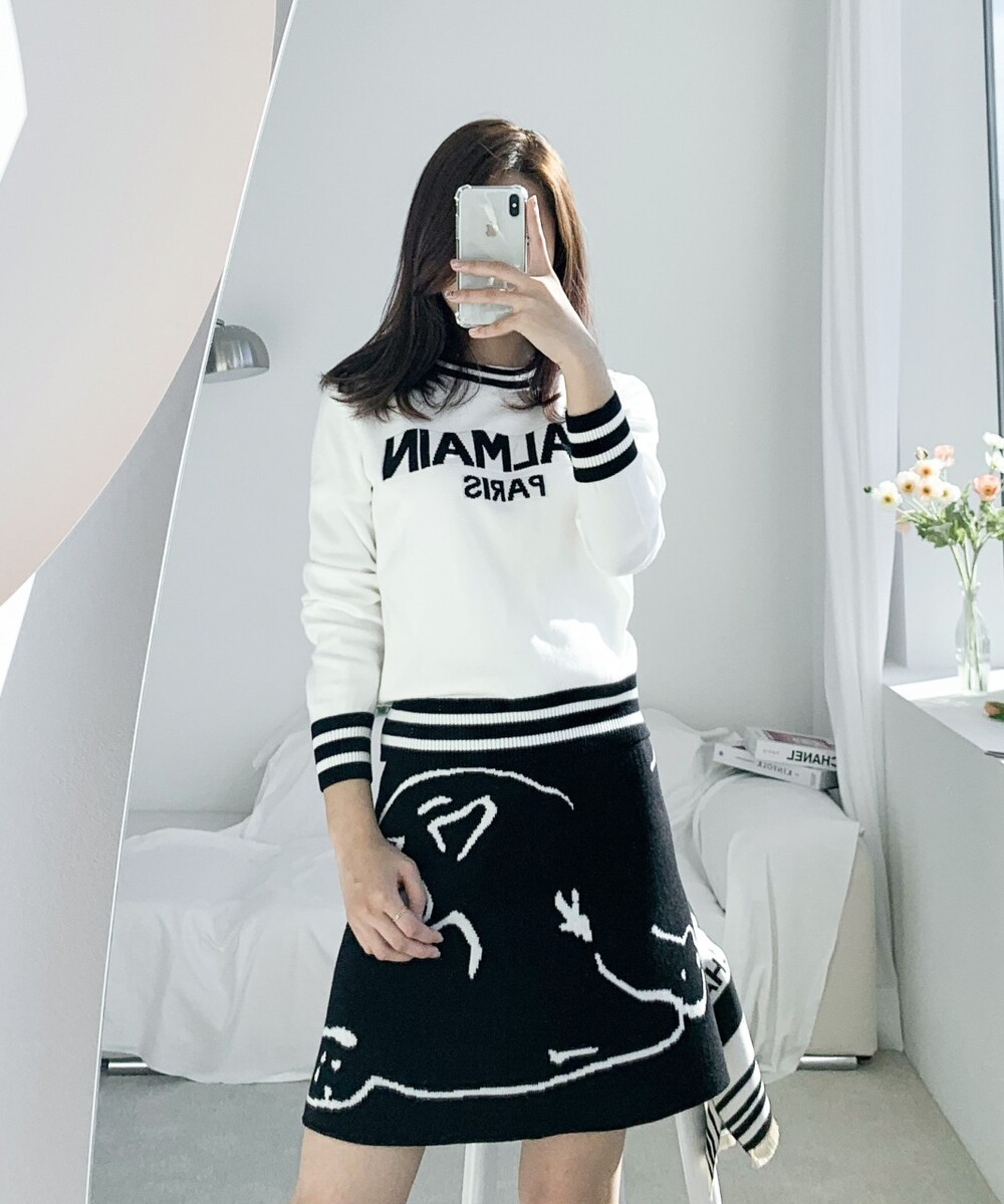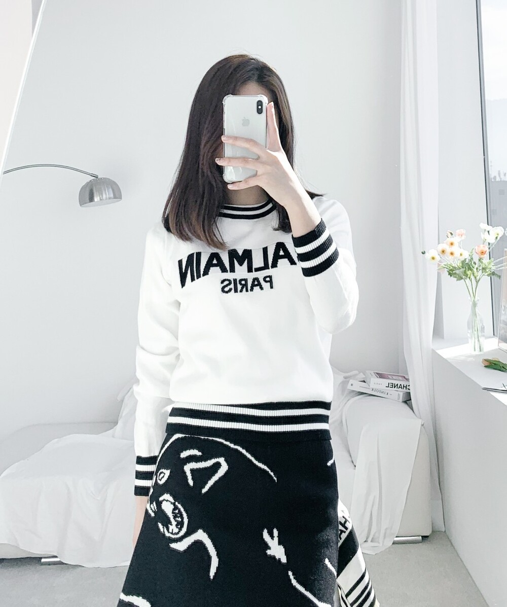 발망 수입고급 로고 디테일 크롭 스웻니트 여성용(2컬러)
