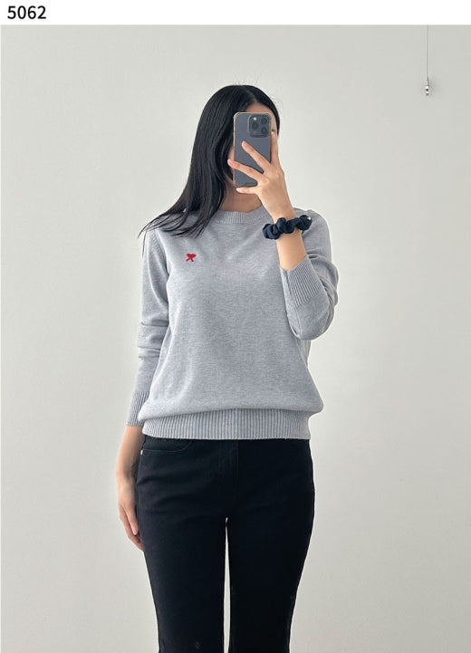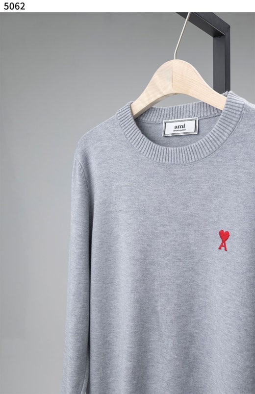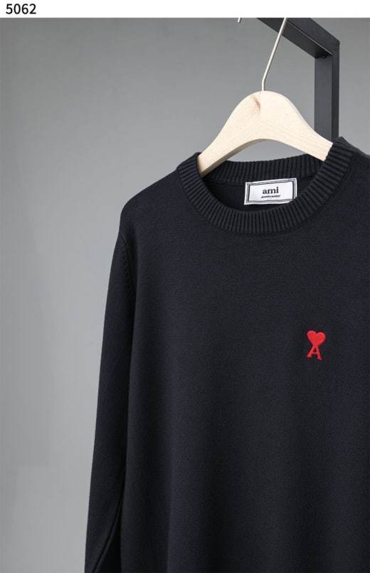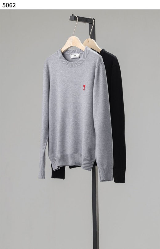 아미 스몰 로고 자수 라운드 니트 남여공용(2컬러)