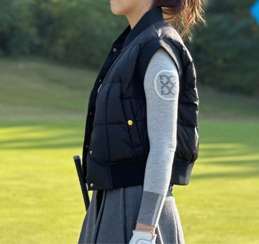 ➡️ 암홀과 밑단에 톤 온 톤 컬러의 리브 텍스처를 블록하여 포인트를 준 베스트 입니다.