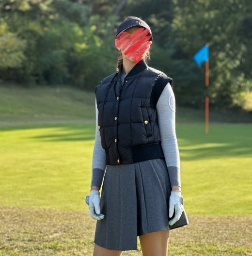 랑방블랑 매.장.판 텍스처 블록 구스 다운 베스트 블랙 여성용(1컬러)