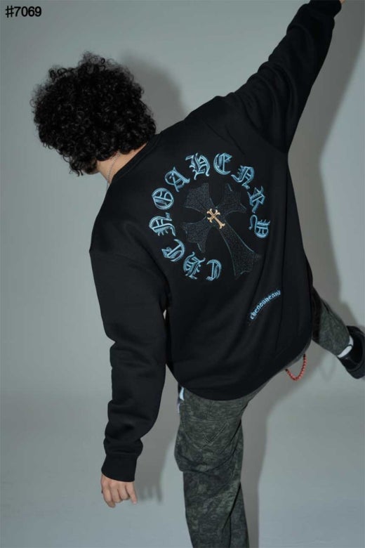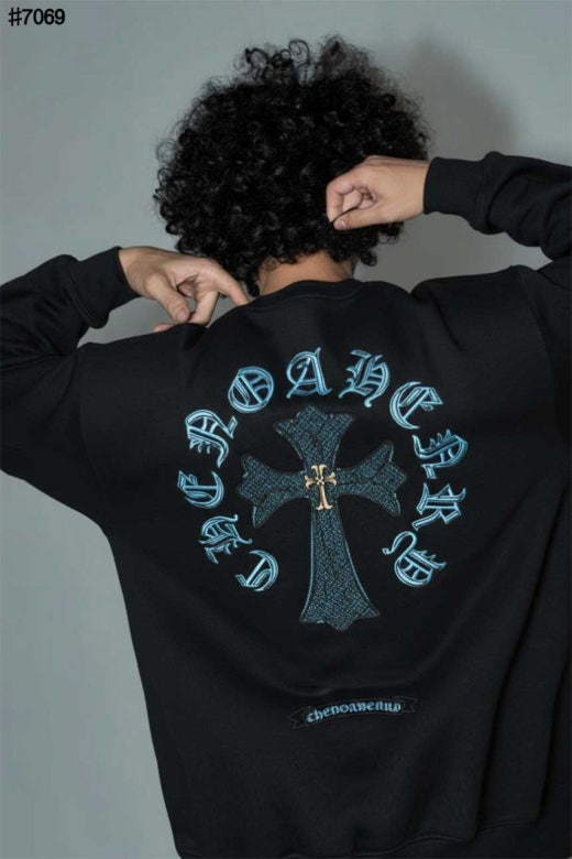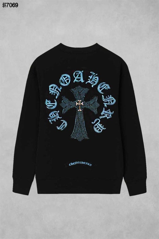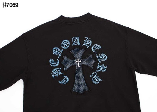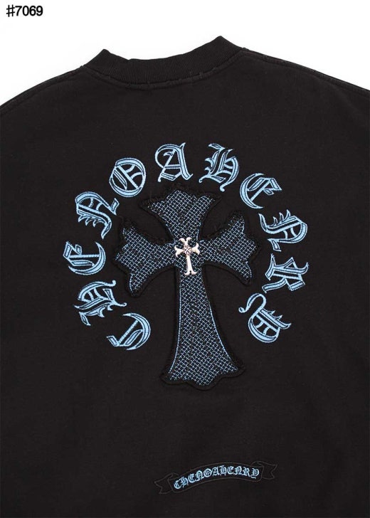크롬하츠 블루 크로스 스틸 로고 빈티지 맨투맨 티셔츠 블랙 남성용(1컬러)