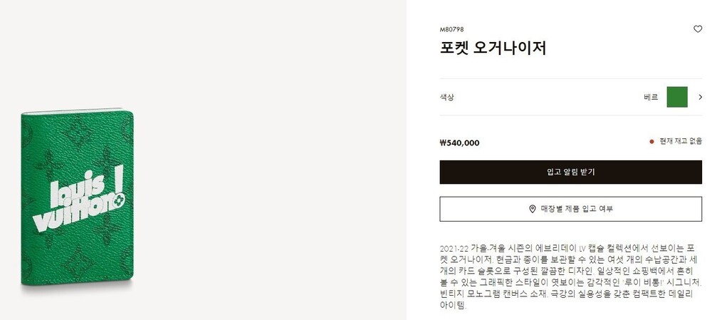 루이비통 에브리데이 LV 포켓 오거나이저 그린 남여공용(1컬러)