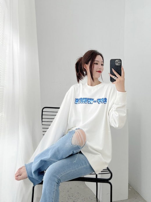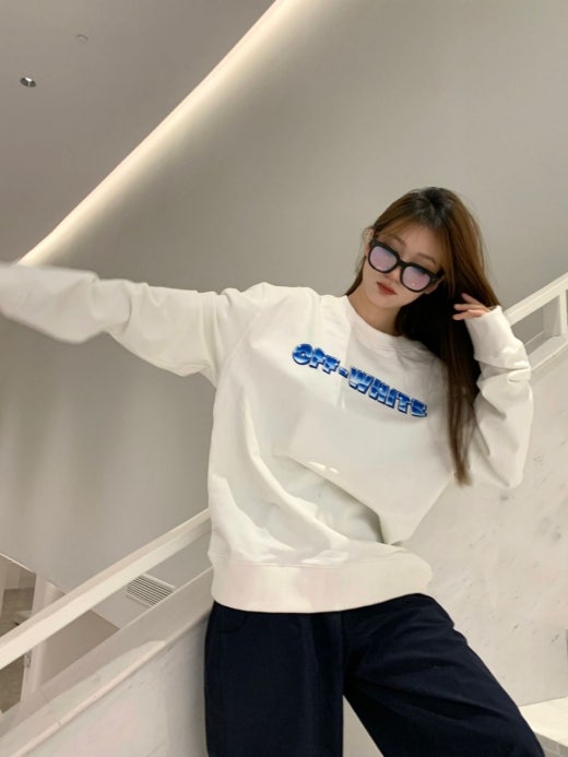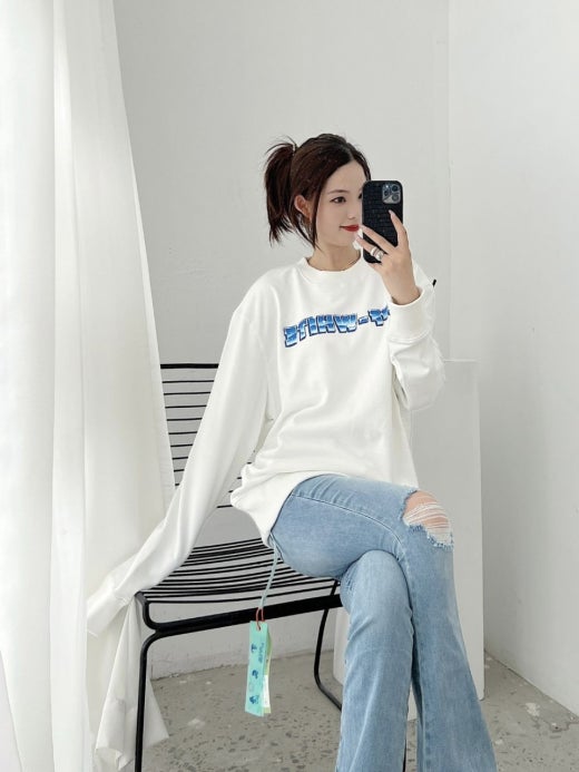 오프화이트 블루 마커 맨투맨 남여공용(2컬러)