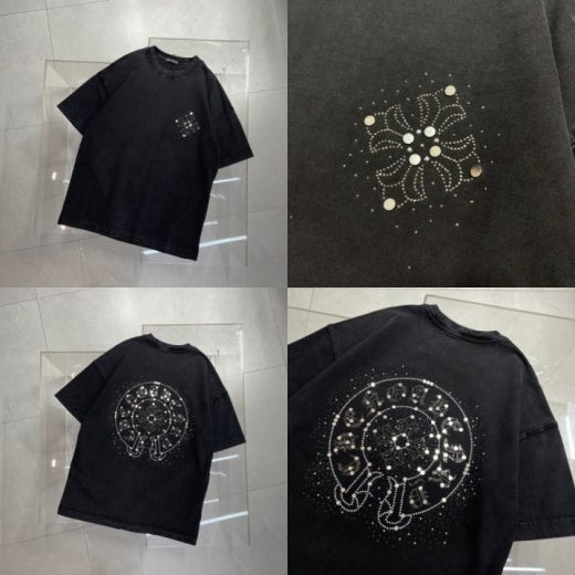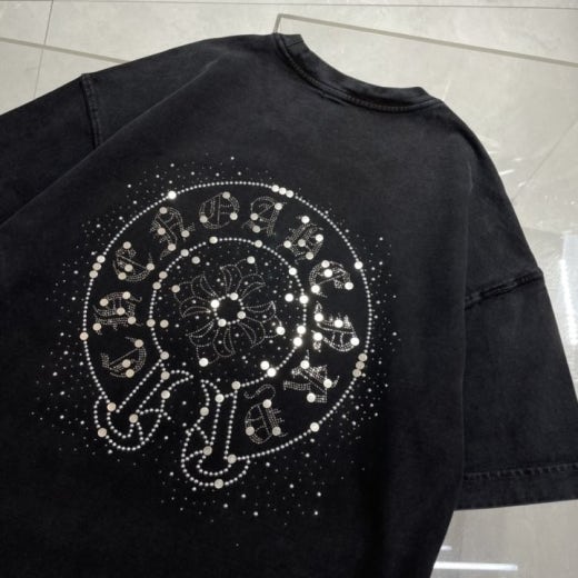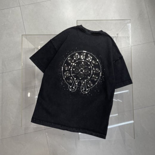 크롬하츠 스틸로고 워싱 반팔티셔츠 남여공용(1컬러)