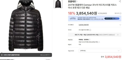 몽클레어 코누어 어드저스터블 커프스 이너 포켓 테크 다운 패딩 블랙 남성용(1컬러)