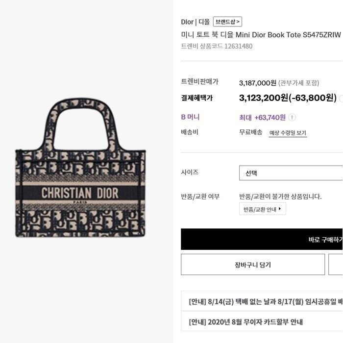 디올 북 토트백 미니 그레이 여성용(1컬러)