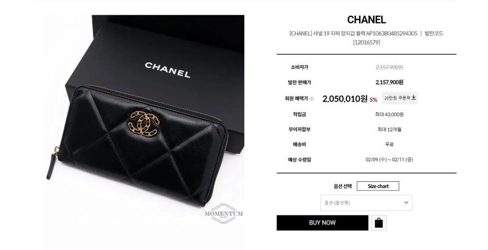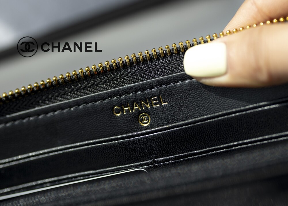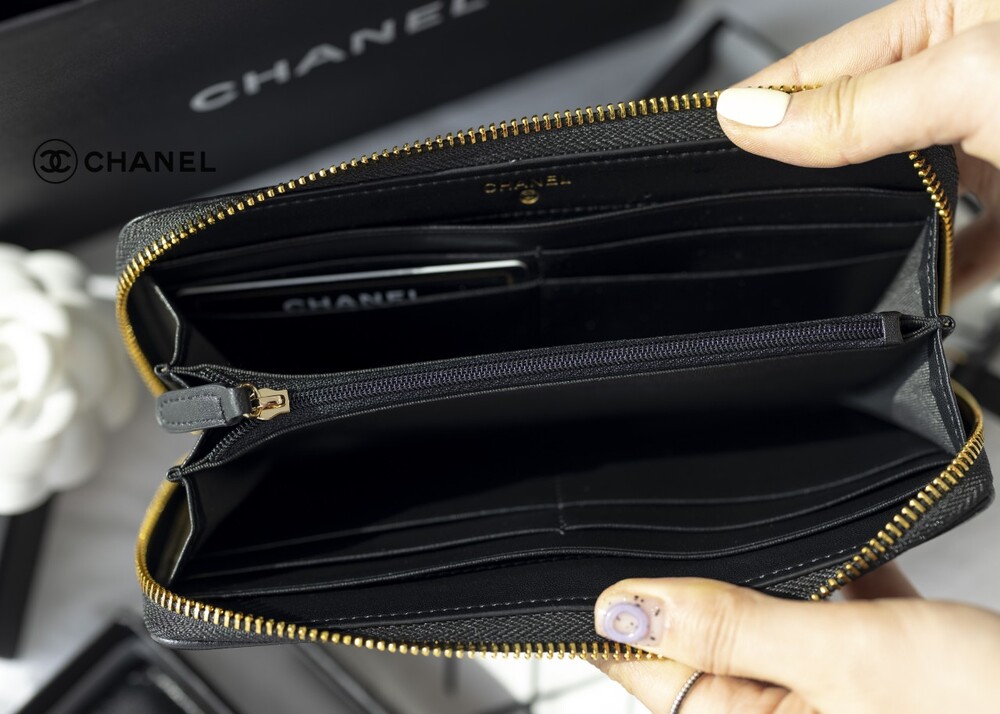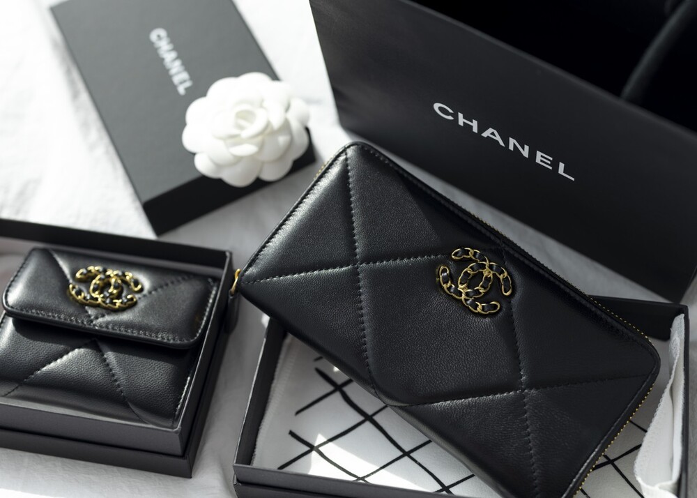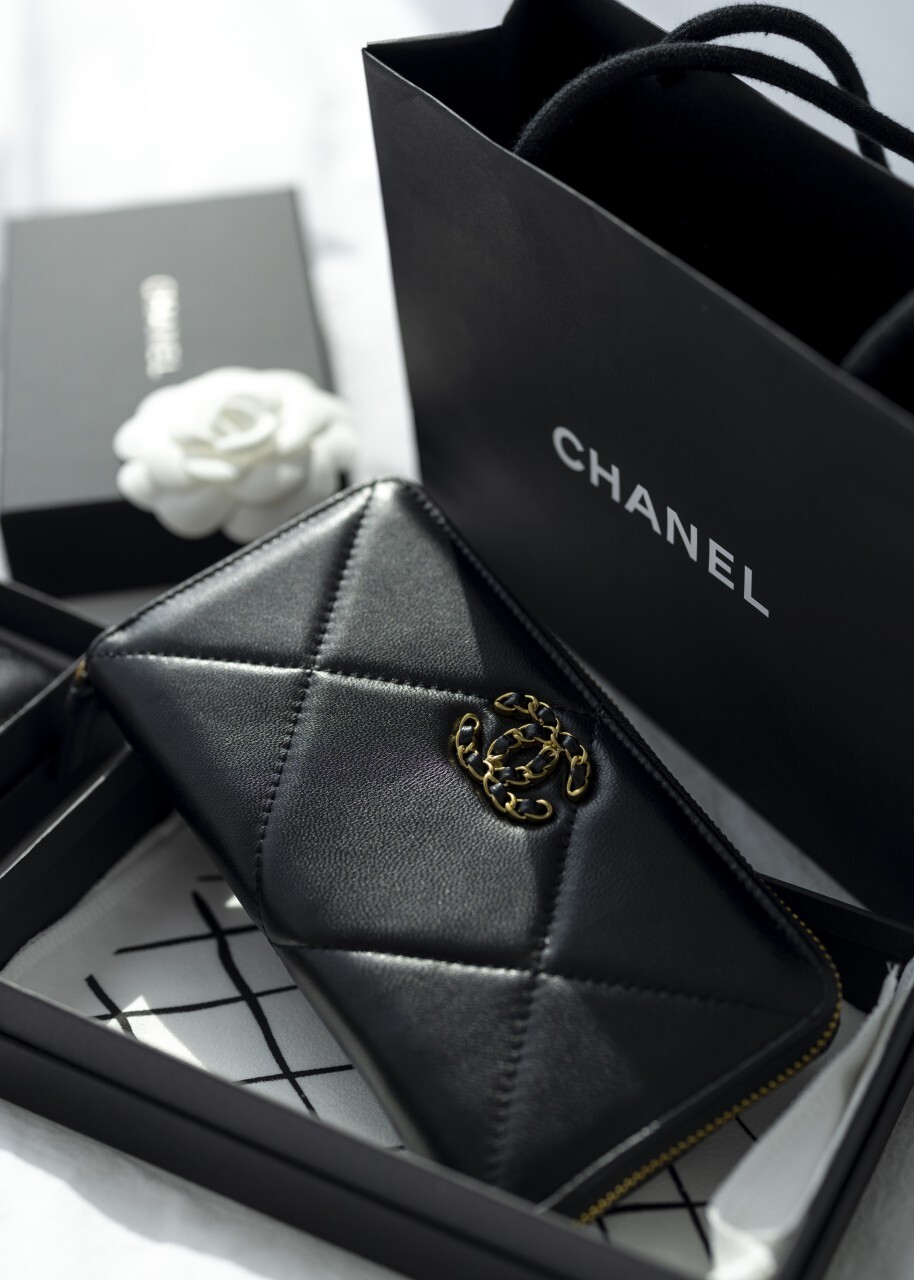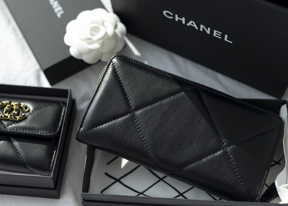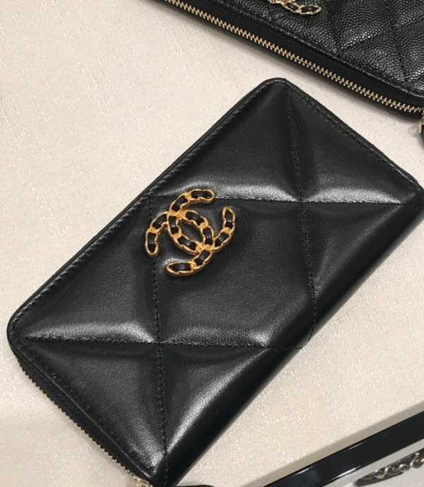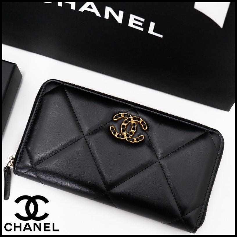 샤넬 19 코트스킨 지퍼 장지갑 블랙 여성용(1컬러)