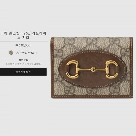 구찌 홀스빗 1955 카드 반지갑 베이지&브라운 여성용(1컬러) ⚓542